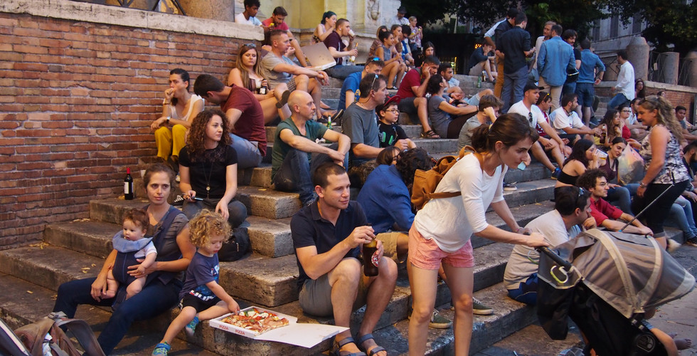 טסנו באלאיטליה. (אני מניחה שגם אתם קוראים צמד מילים אלו ומתחילים לבכות). אל איטליה. החלק הזה עבר בשלום יחסית היה מקום על הטיסה יובל נרדם השכבנו אותו מתחת לספסל. שרדנו. הבעיה עם אלאיטליה היא שאני מאוד אוהבת את איטליה ורומא בכלל. זה סוג של נוף ילדותי. אשרי ההורים שהביאוני עד הלום שוב ושוב. לא התבאסתי מדי מכל עניין הדרכון כי לכאן אני אשוב. אני לא יודעת איך. אולי עם סירת גומי. על טיסת אלאיטליה לא אעלה יותר כל עוד נפשי בי ובבקשה גם על גופתי המתה כל עוד הדבר בשליטתכם. בכל אופן. רומא. רכבת. הליכה רגלית עם עגלה וטרולי לטרסוורה. פיצה ראשונה. הגעה לדירה המתוקה שרק נישן בה והתרגשות לפגוש את רותי רן איתמר ואיילת. קפה ראשון. הליכה לילית. פיצה שניה. קפה שני או בירה ראשונה. חוצים את הגשר קאמפו דהפיורי פיאצה נאבונה גלידה ראשונה כל הסיבוב. רחבת הפנתיאון עוד סמטה ועוד אחת. יובלי וחבריו הקטנטנים ישנים בעגלה / מנשא ואנחנו משוטטים את עצמנו לדעת בתאורה המחמיאה של רומא.
